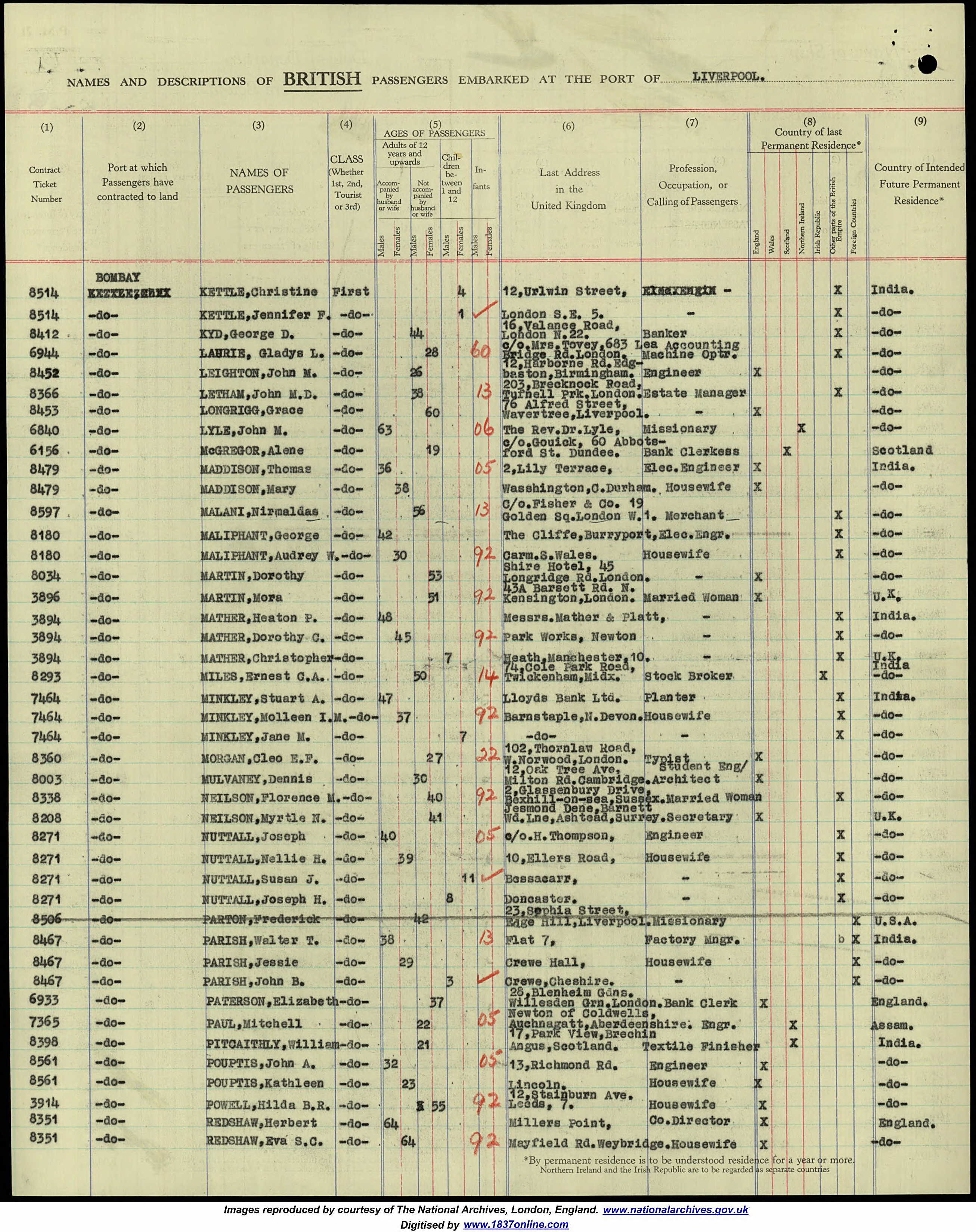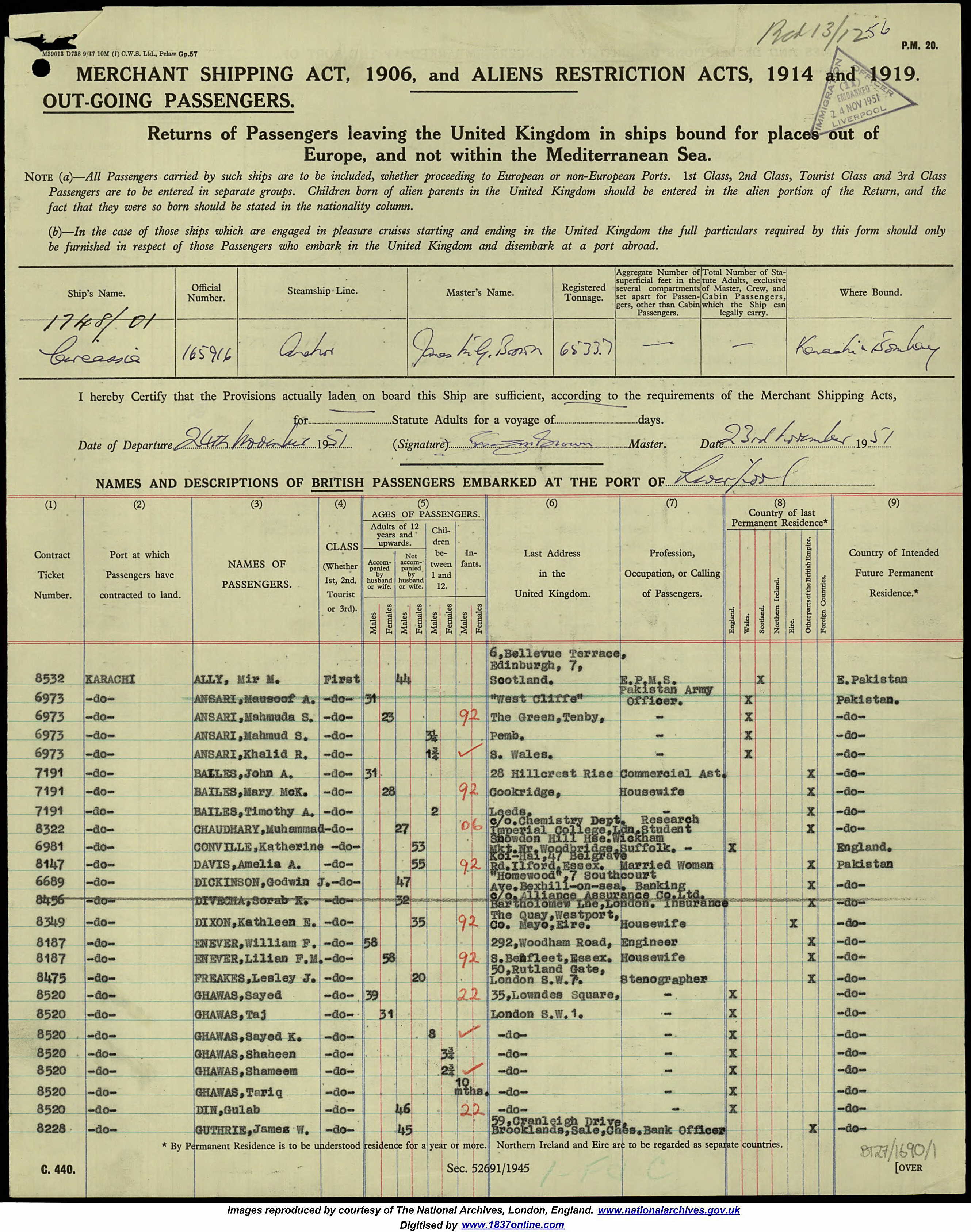 Departure from Liverpool, U.K.