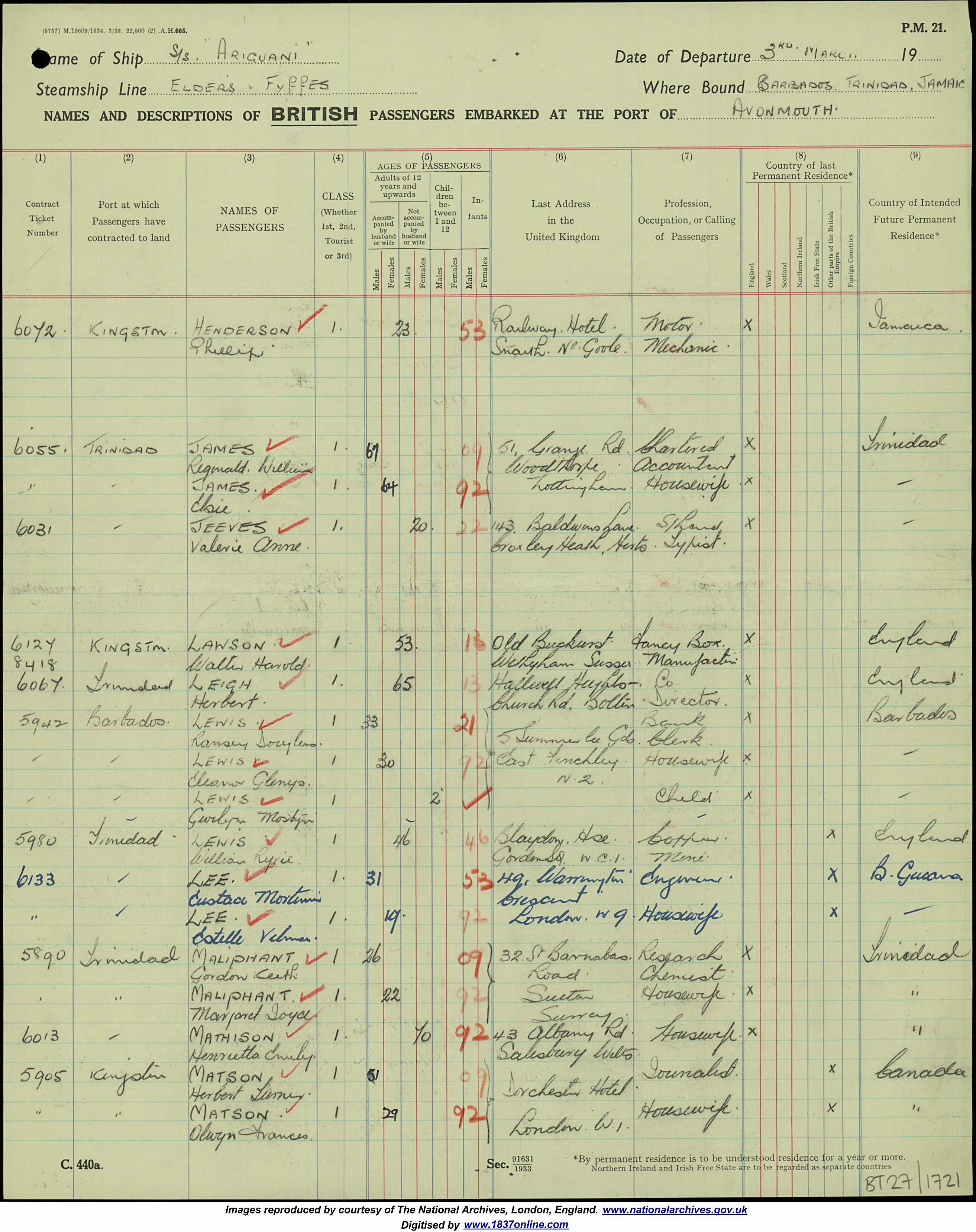 Travelling from U.K. to Trinidad in 1953
