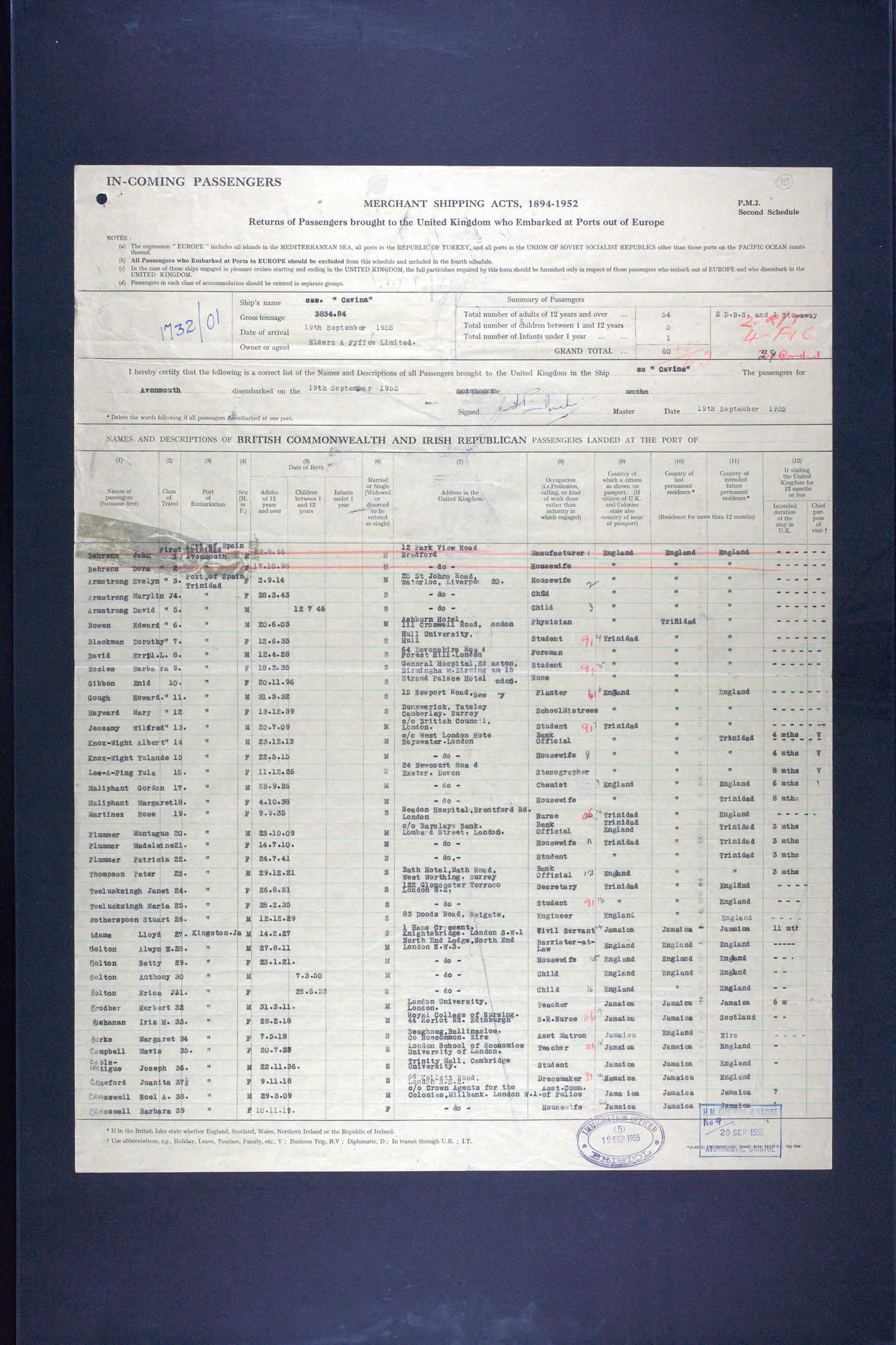 Port of Spain, Trinidad on 5th September 1955 E