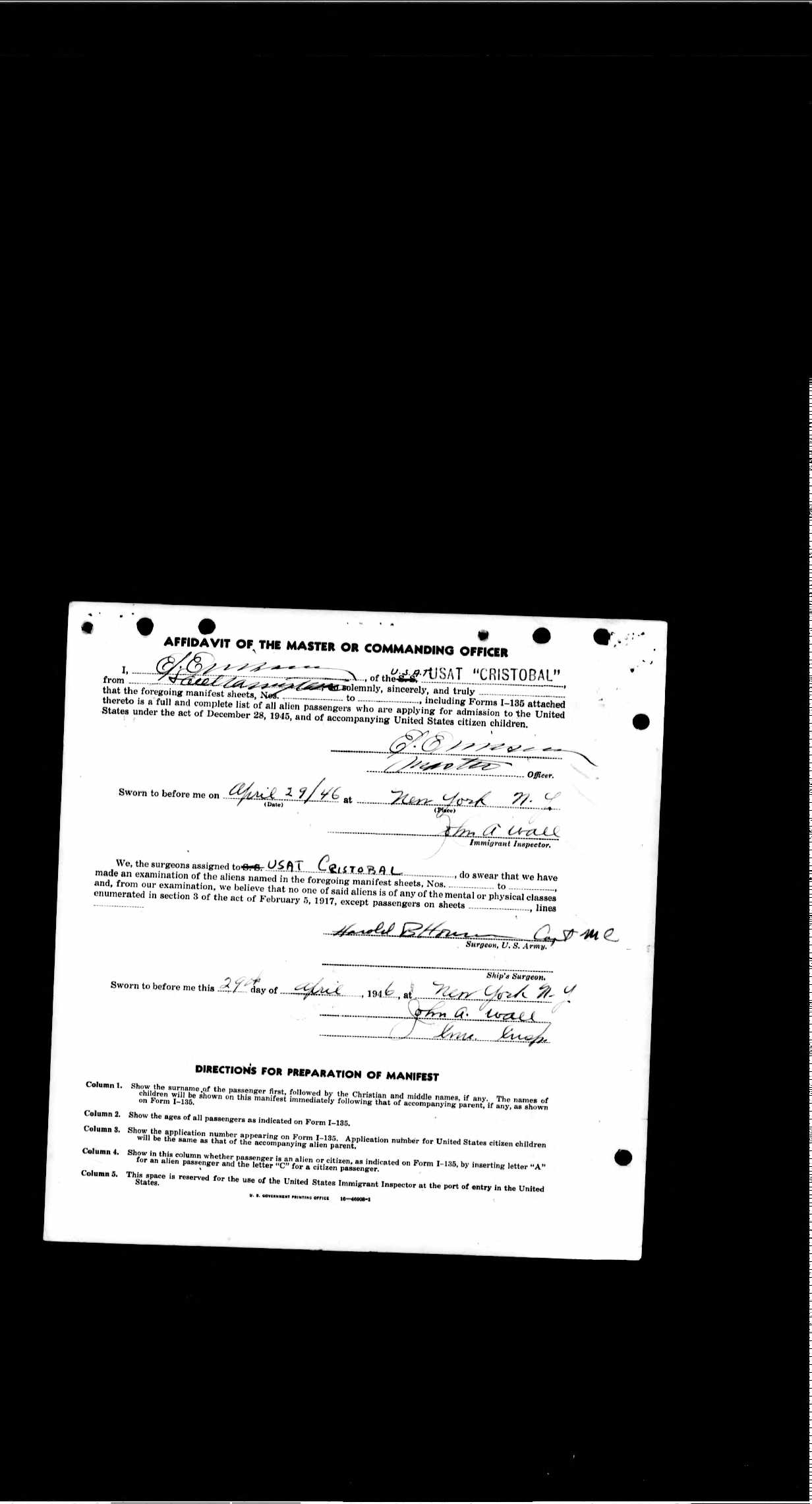 Ship: USAT Cristobal