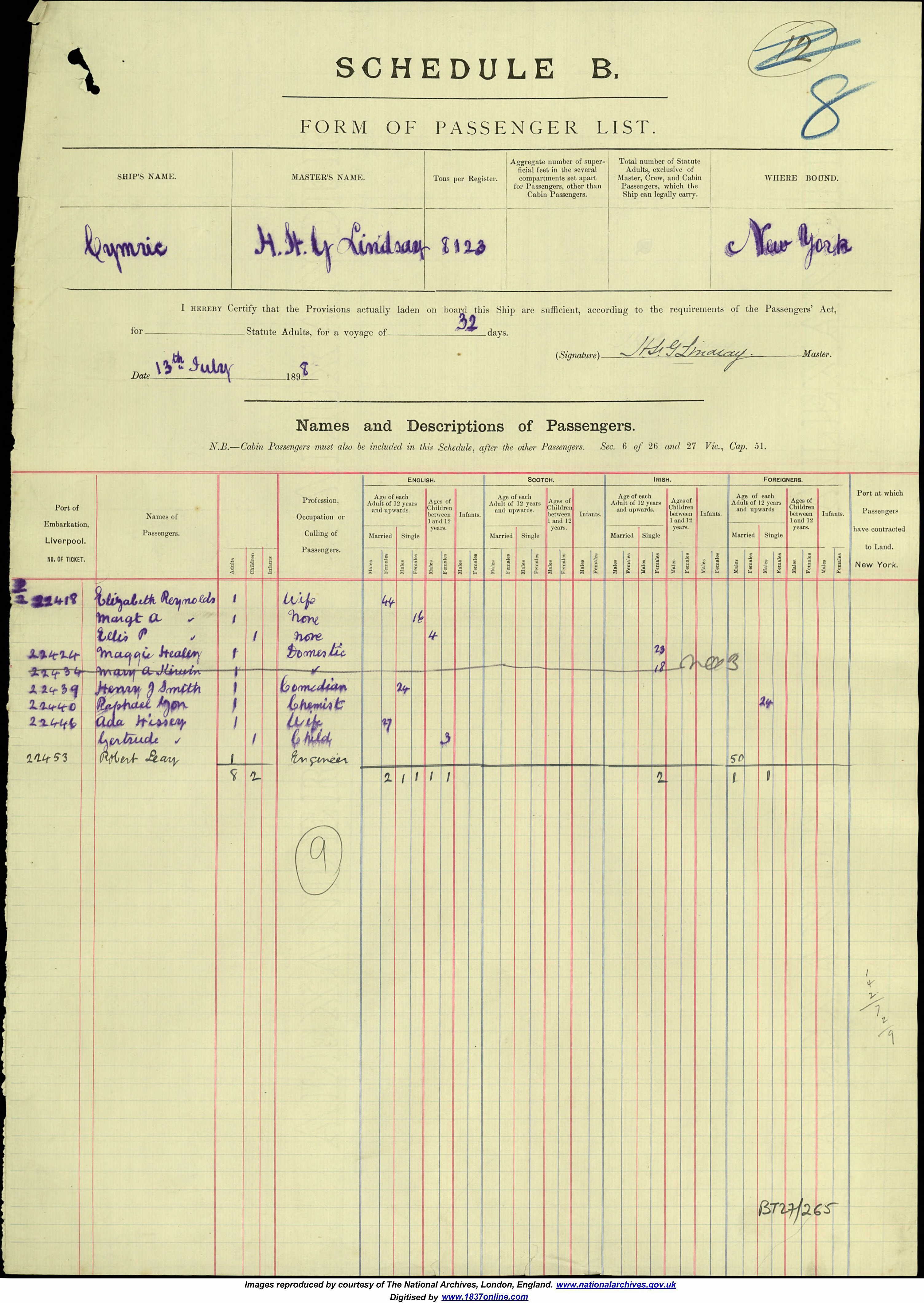 Liverpool, U.K. on 13th July 1898