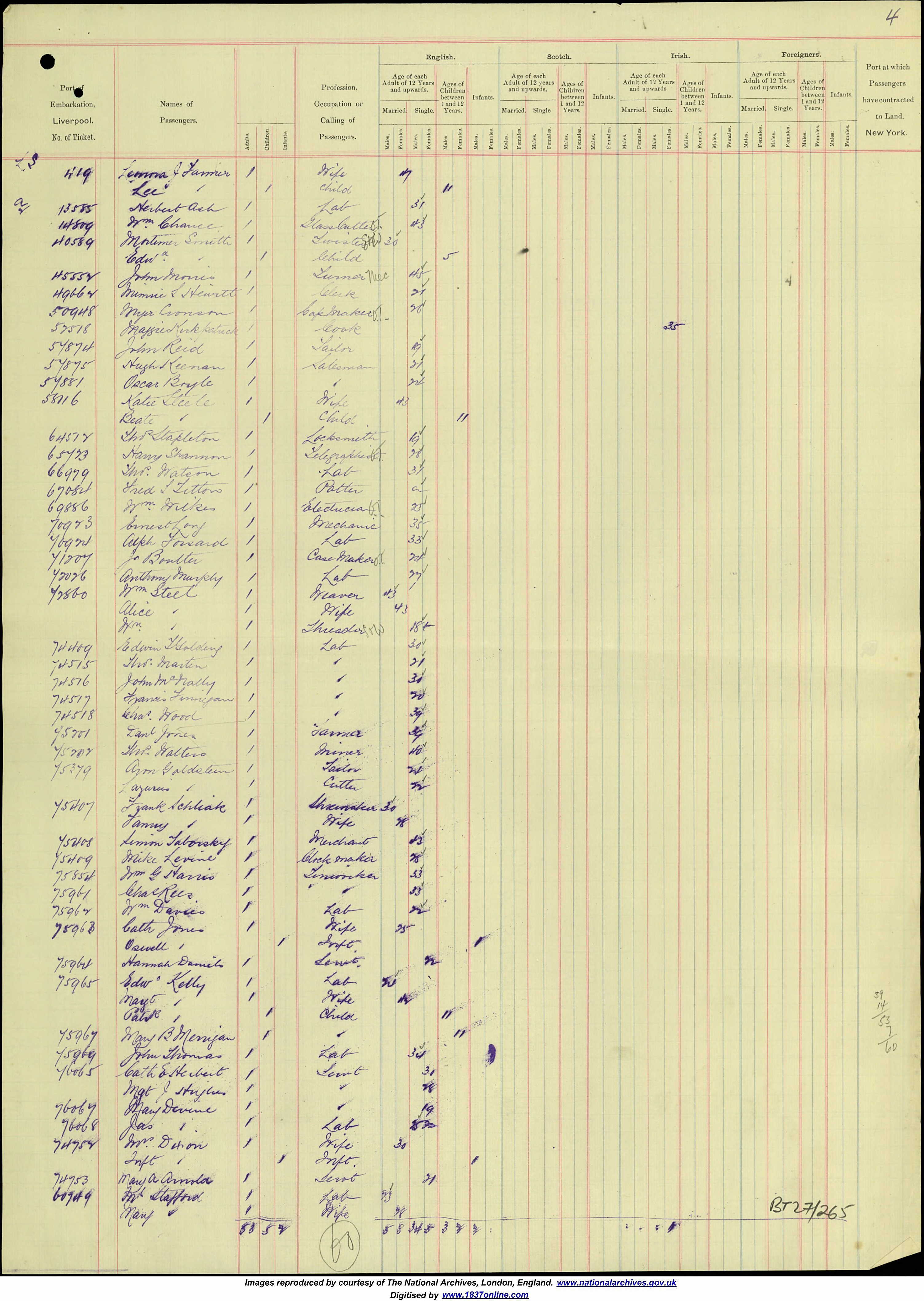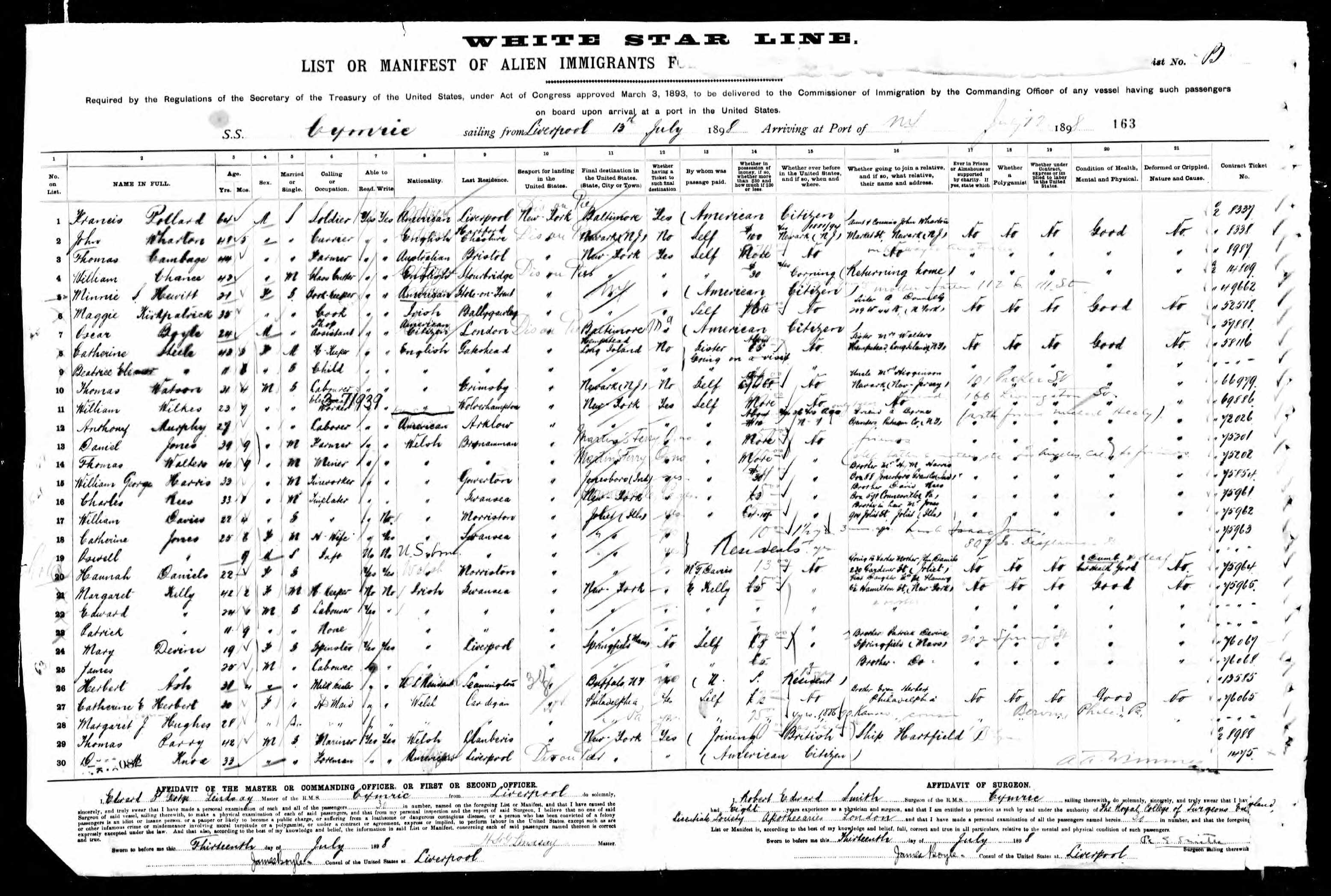 Travelling from U.K. to U.S.A. in 1898