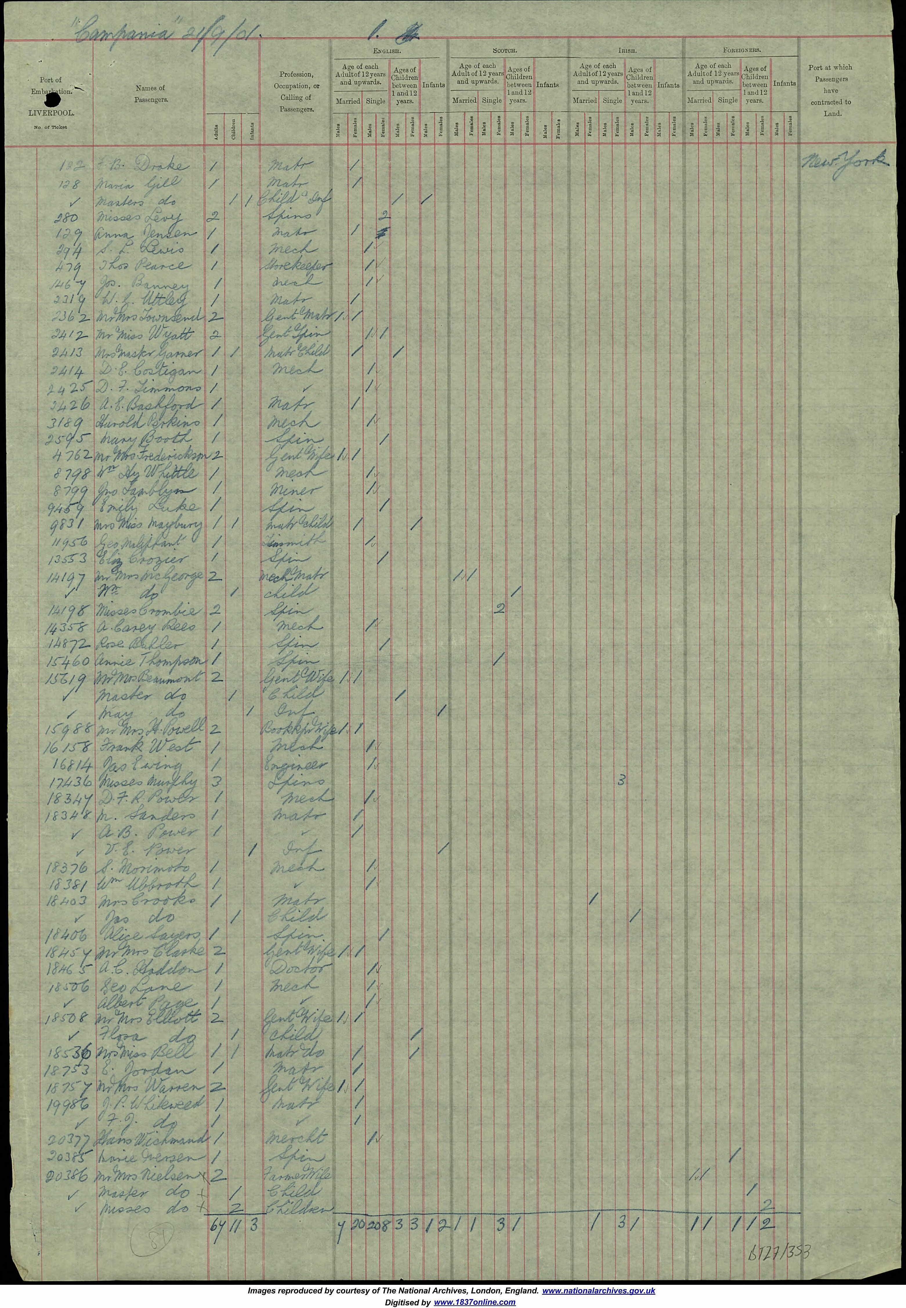Travelling from U.K. to U.S.A. in 1901