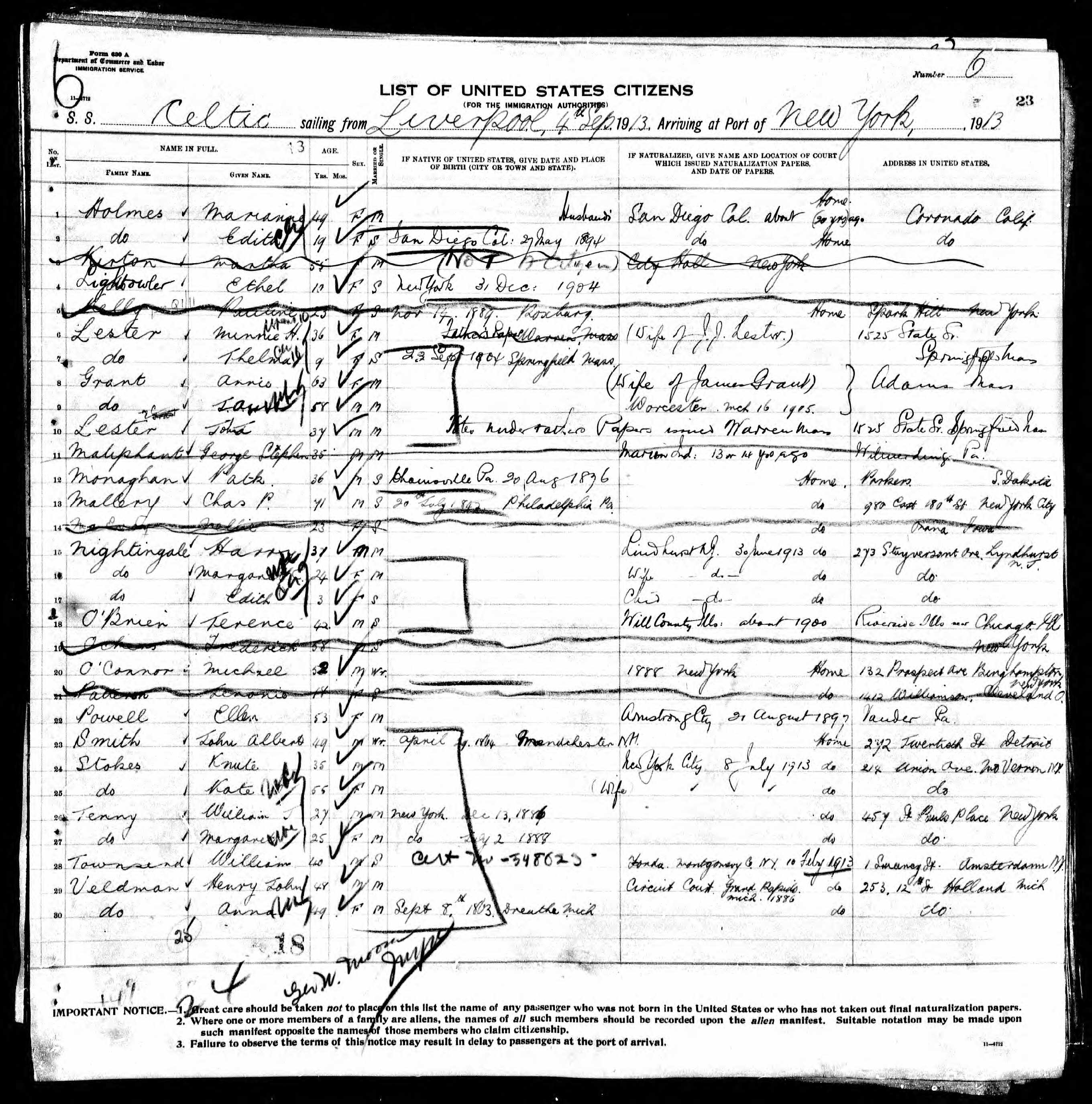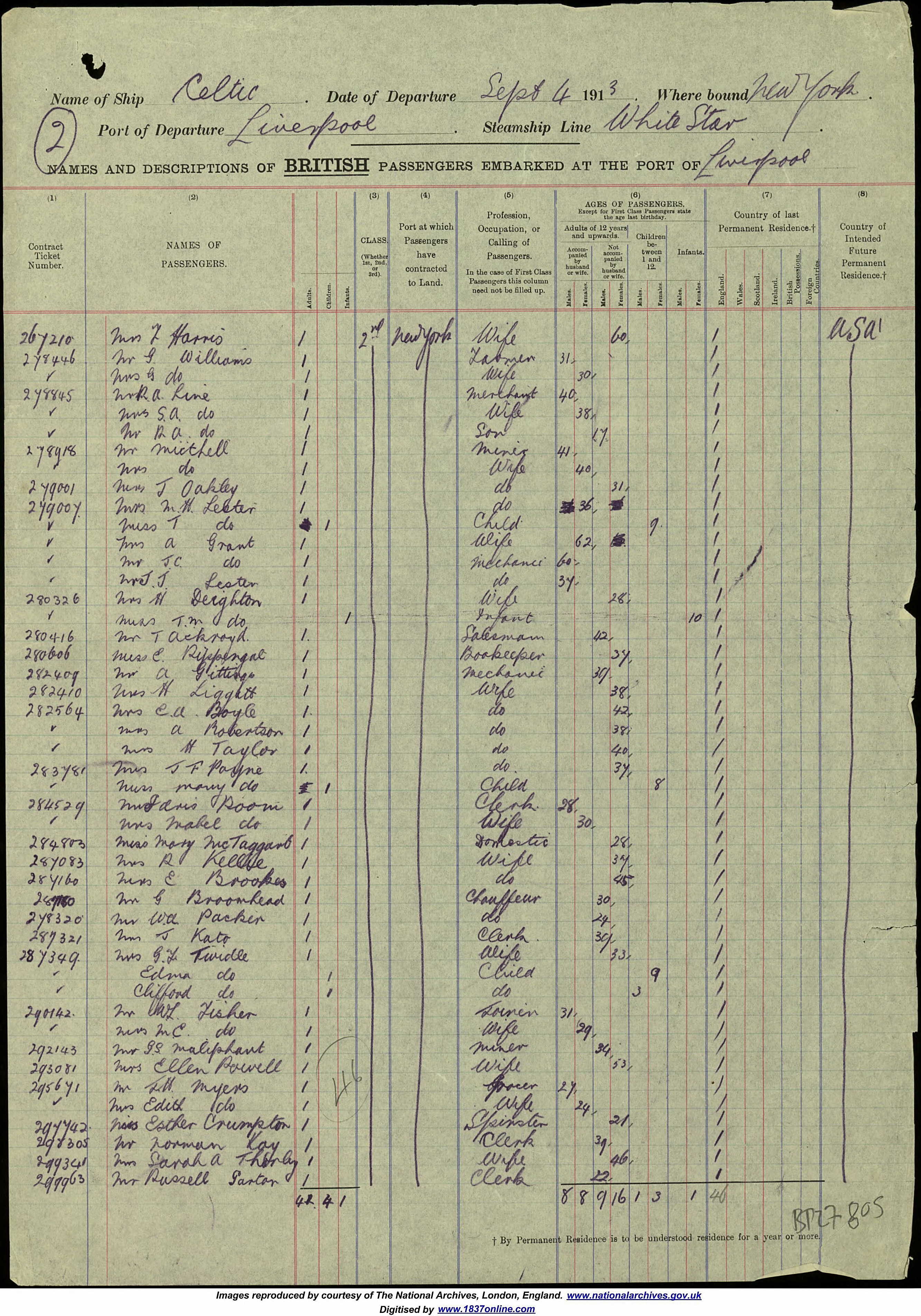 Travelling from U.K. to U.S.A. in 1913