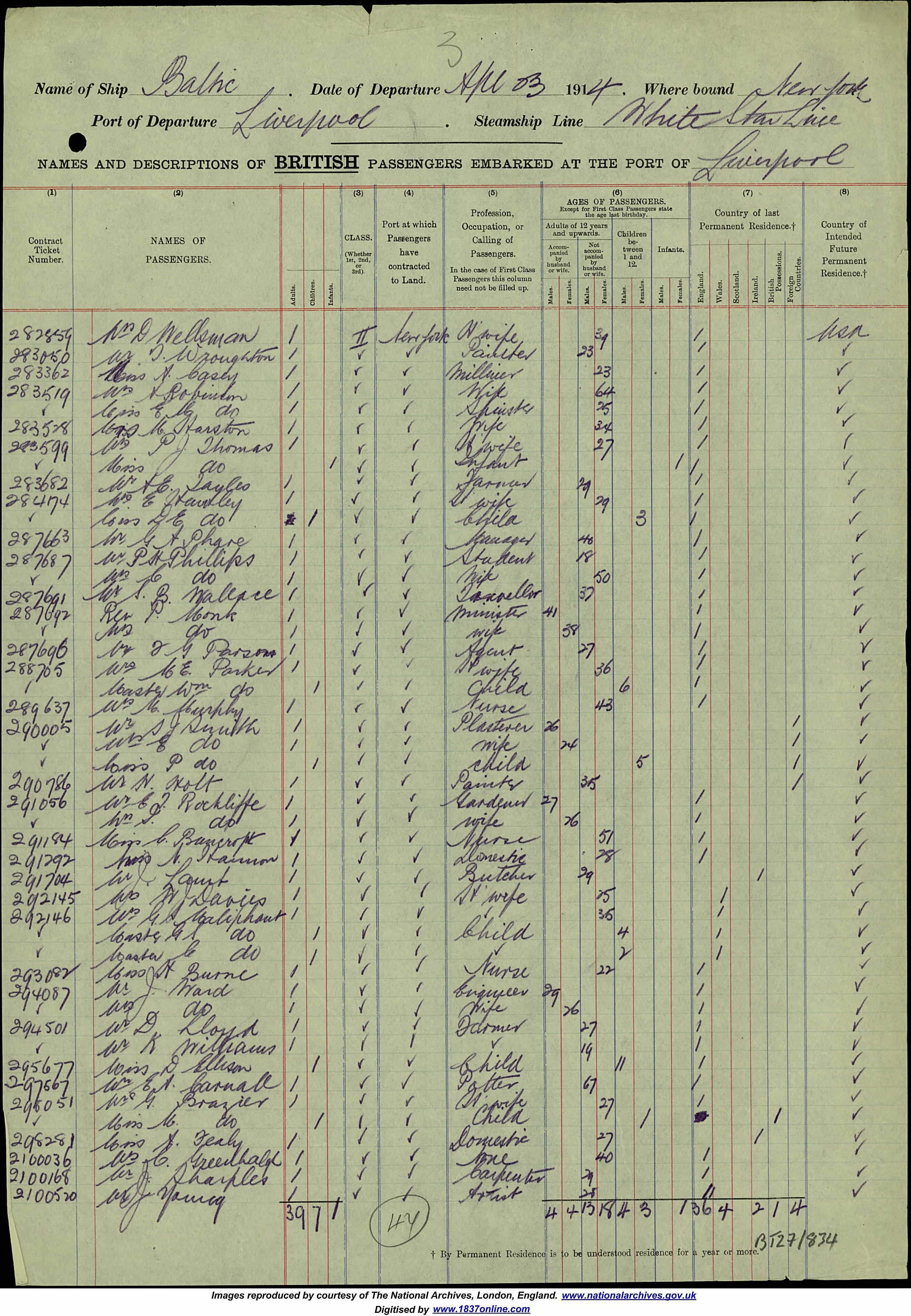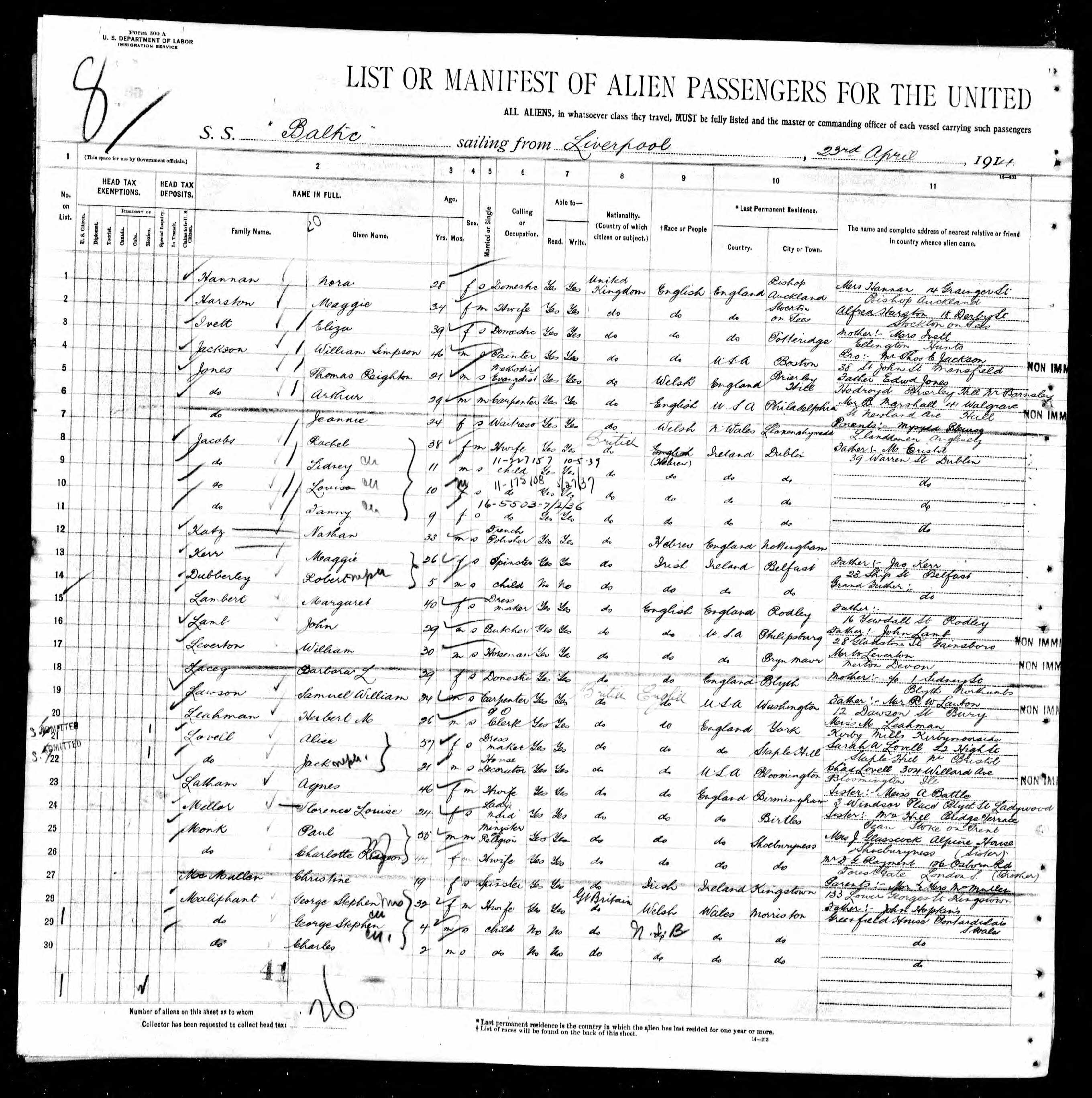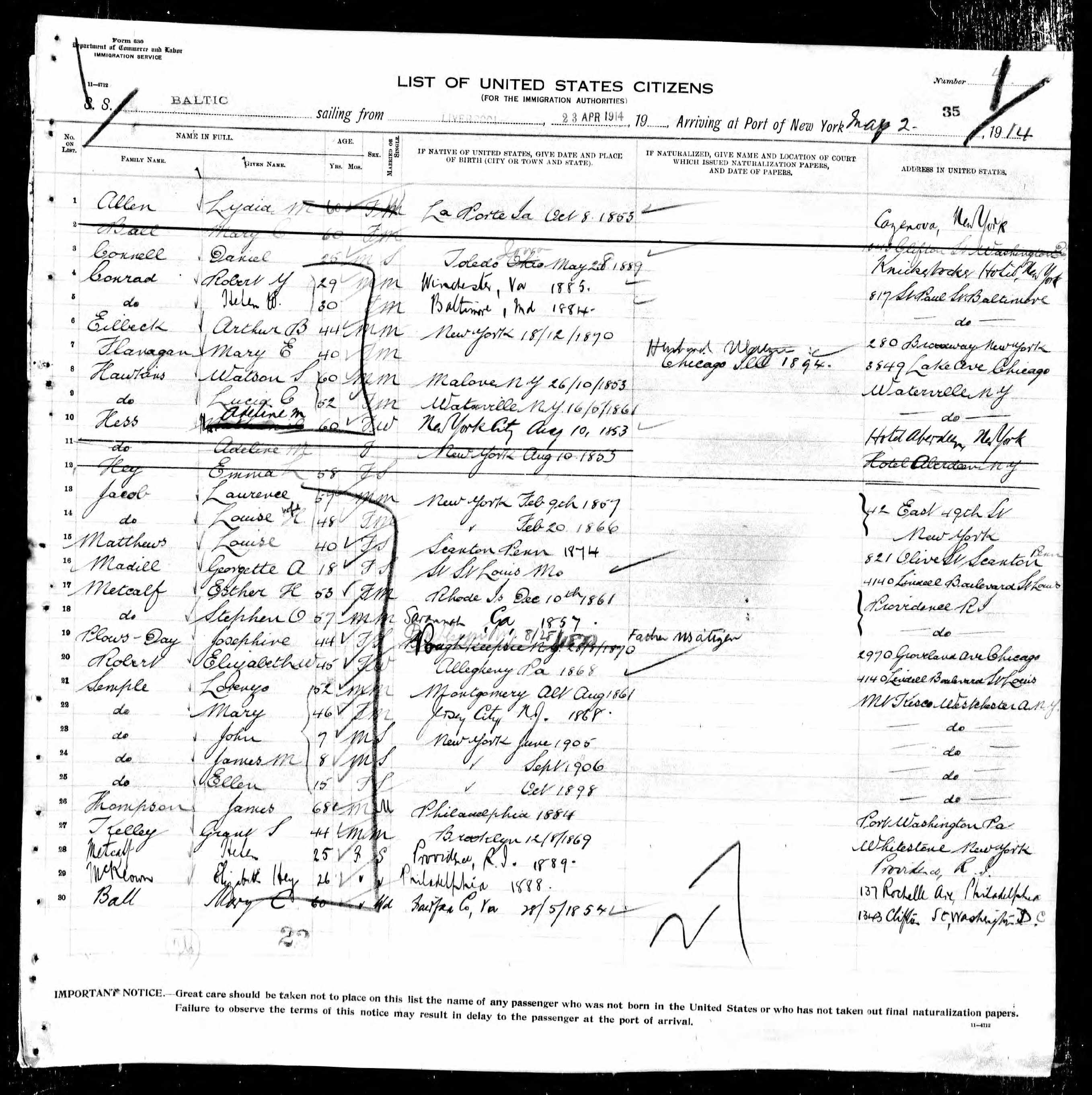 Travelling from U.K. to U.S.A. in 1914